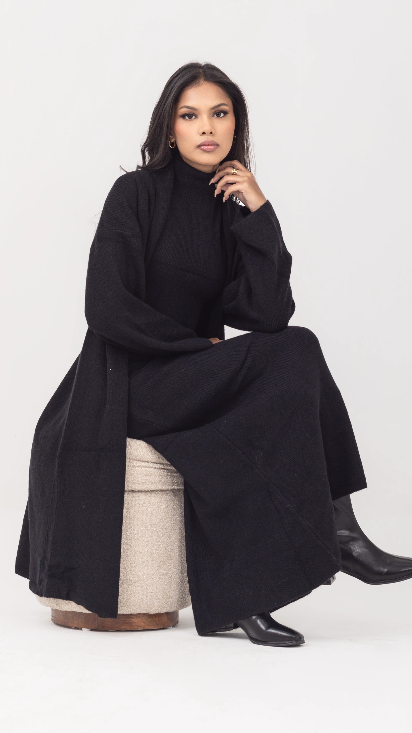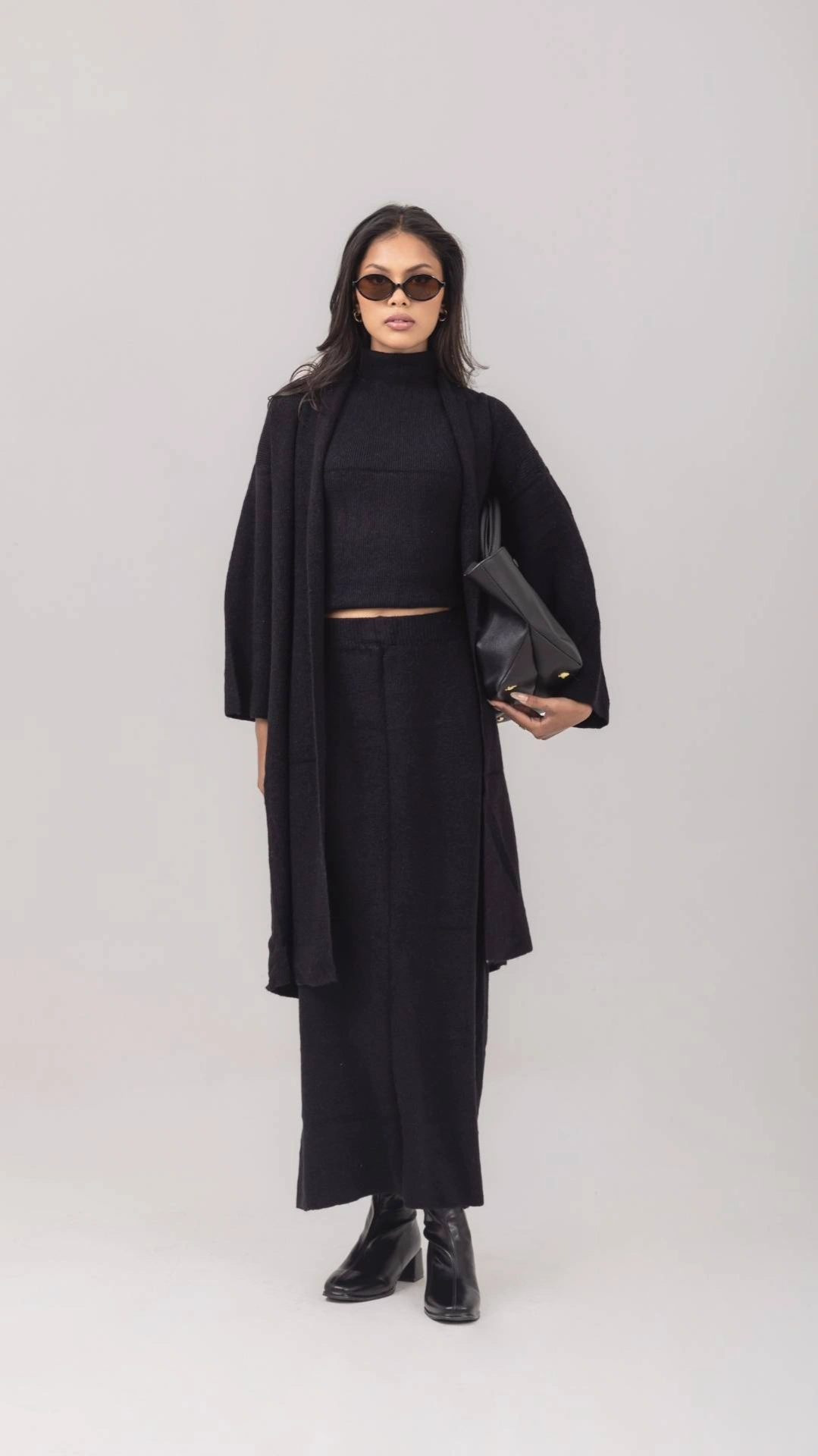 3 Piece Set: Includes Sleeveless mock-neck, Maxi skirt, & Cardigan