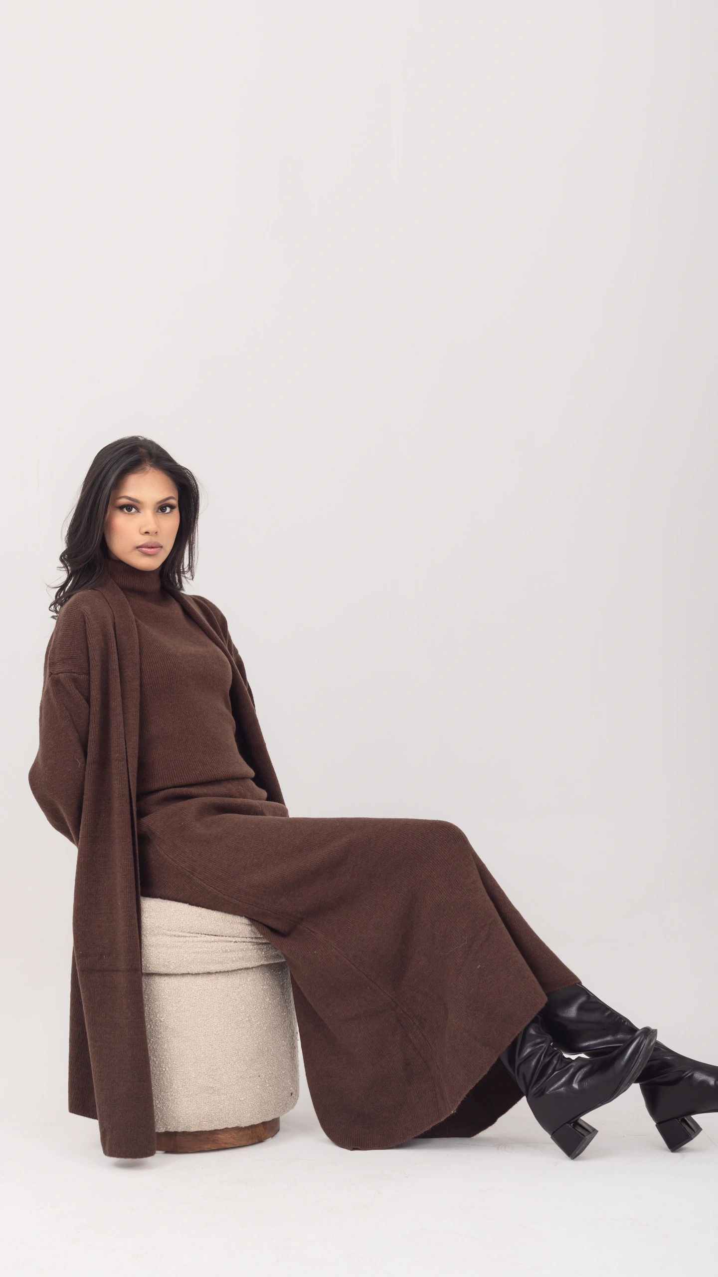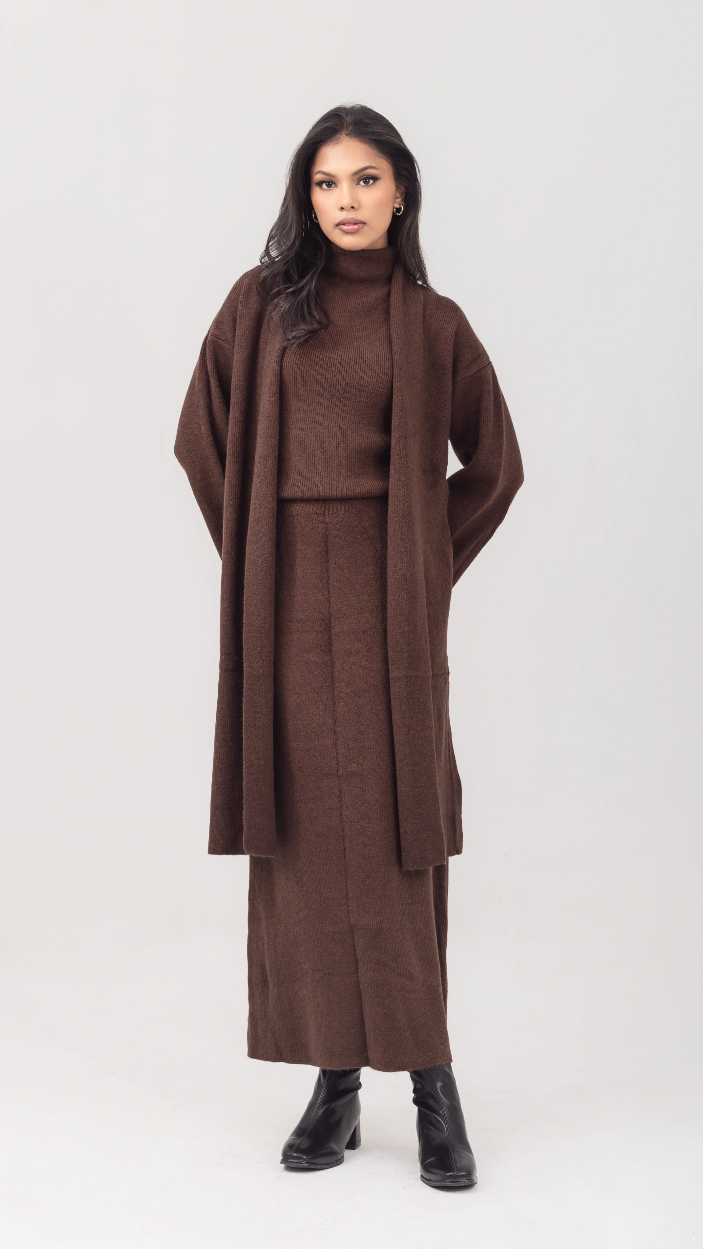 3 Piece Set: Sleeveless mock-neck, Maxi skirt, & Cardigan
