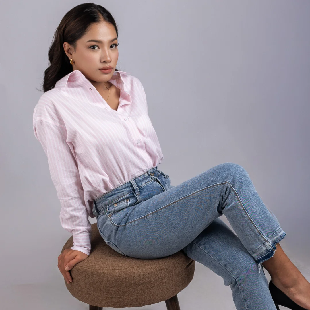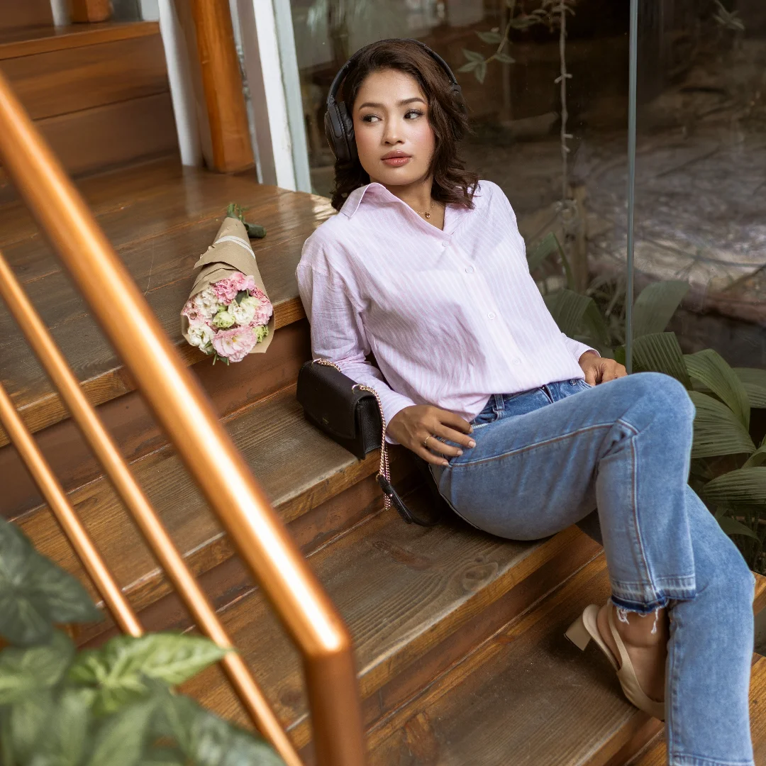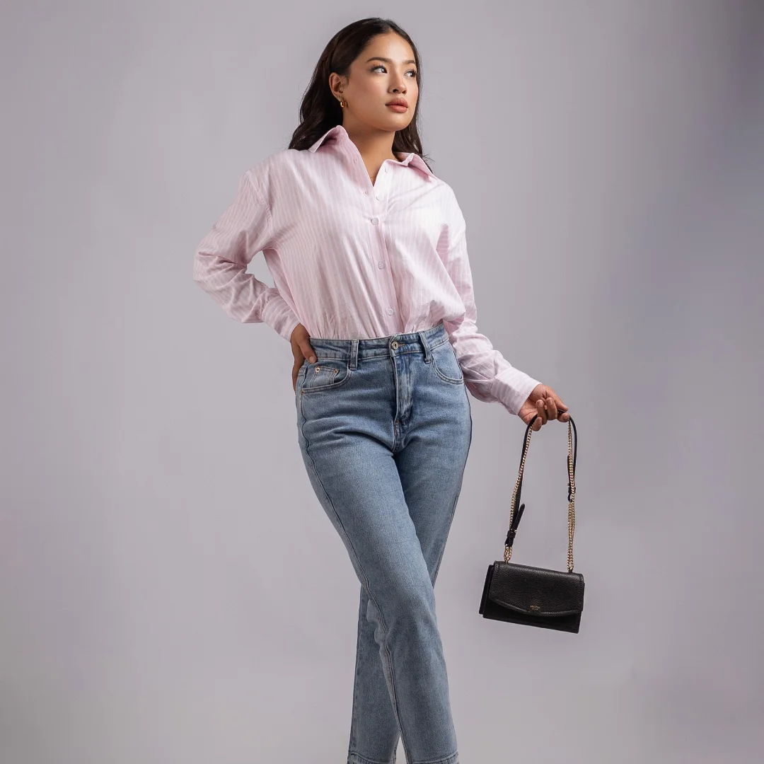 The classic boyfriend shirt just got a sweet upgrade! It's slightly oversized fit and the perfect blush pink hue will have you reaching for it again and again.