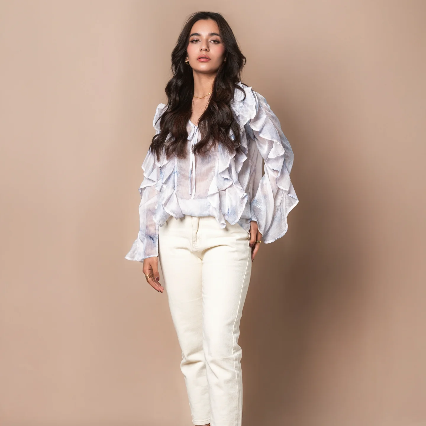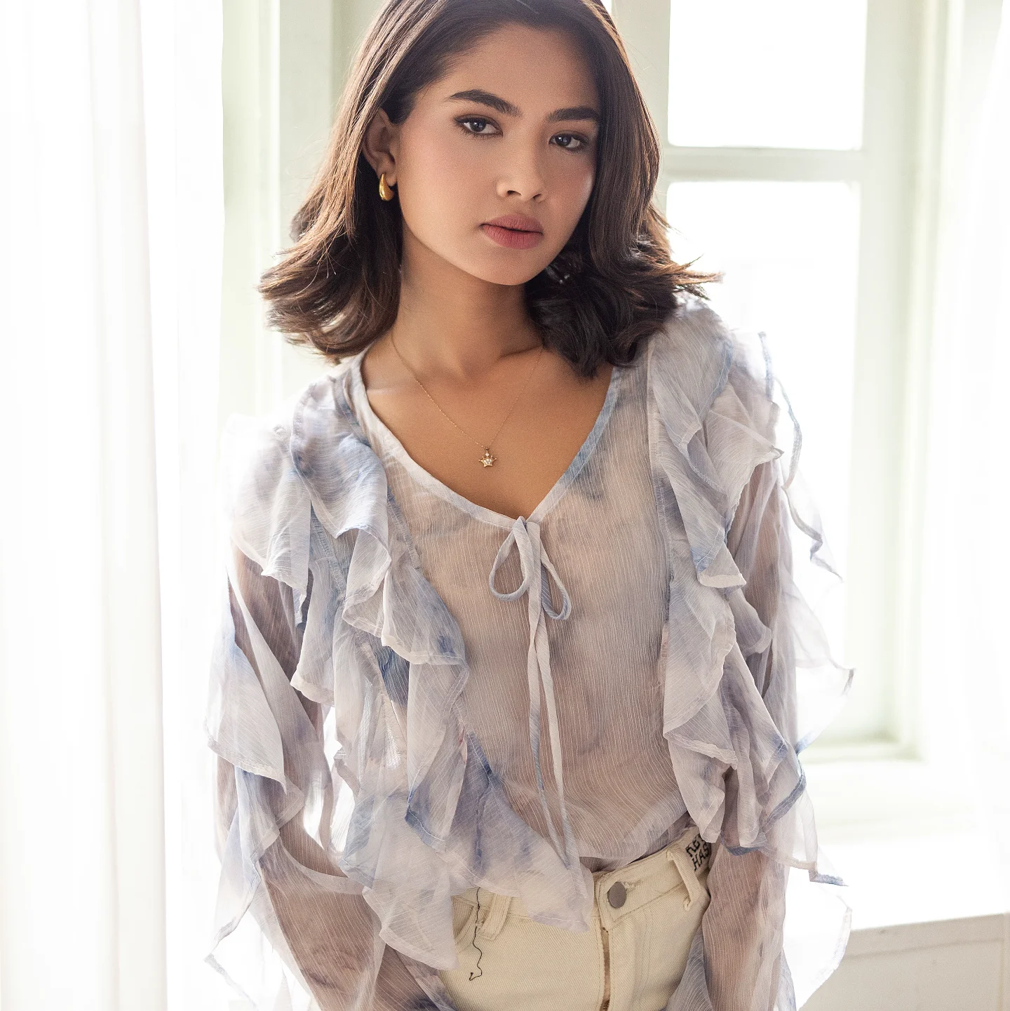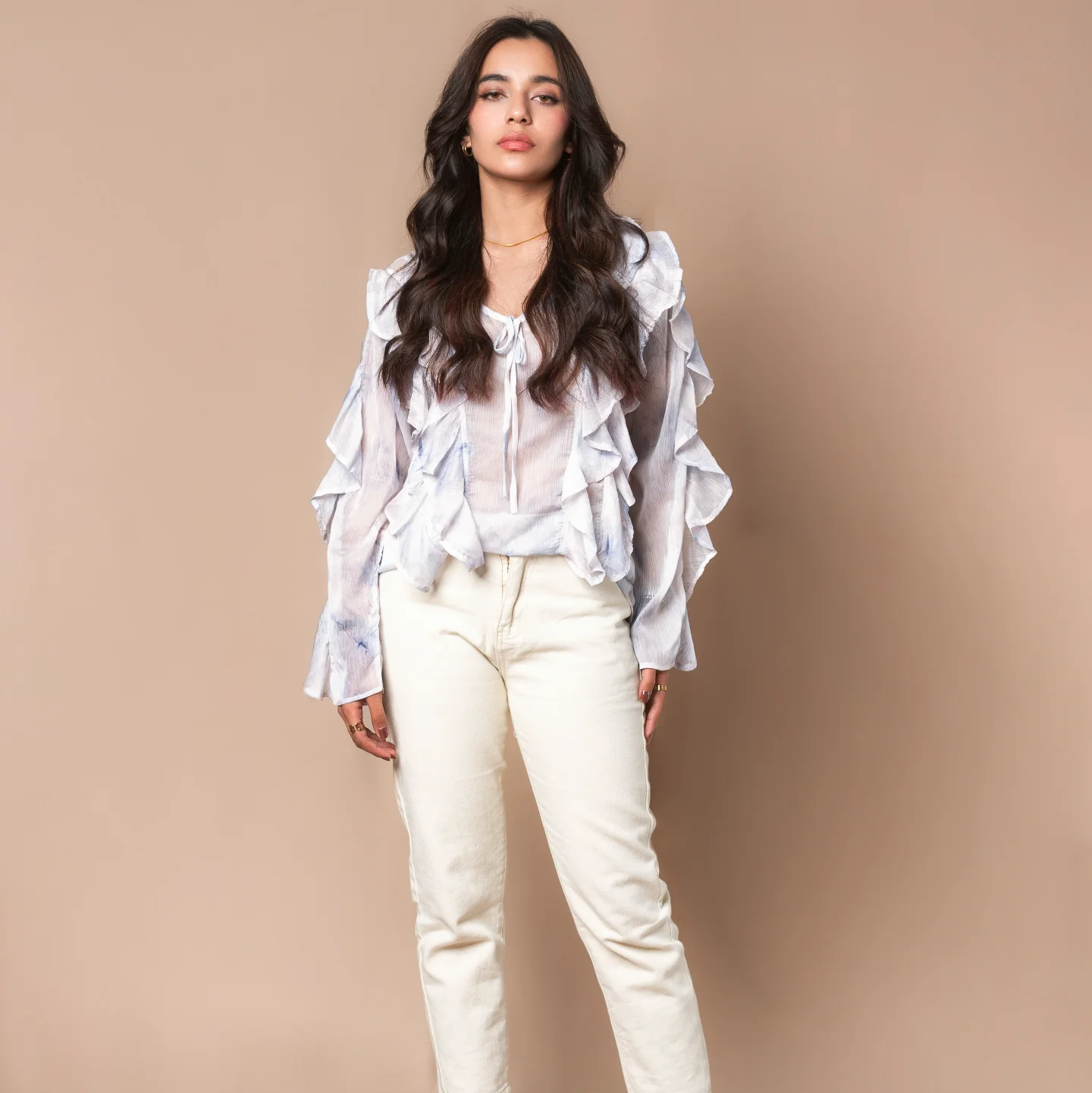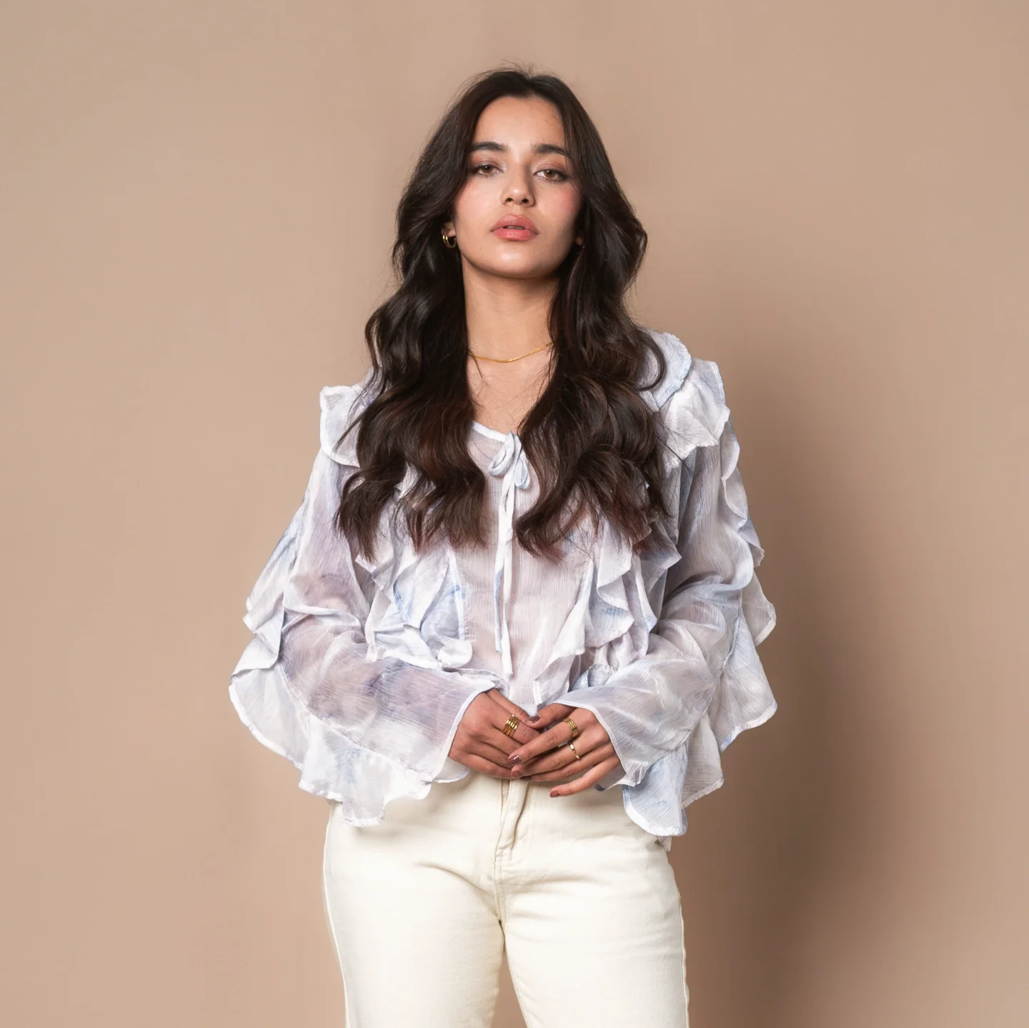 Light, airy, and oh-so-cute! The Cassie Top’s sheer chiffon, and trendy ruffles print bring the perfect mix of style and fun to any outfit.