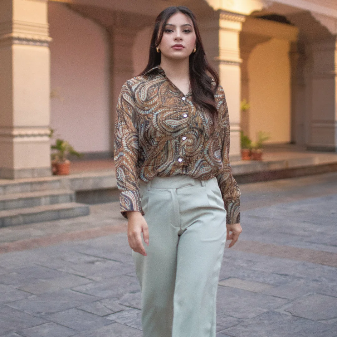 Make a statement with our Claire Button Down Shirt. Its classic silhouette and beautiful bold prints are a great way of showing a glimpse of your vibrant personality.