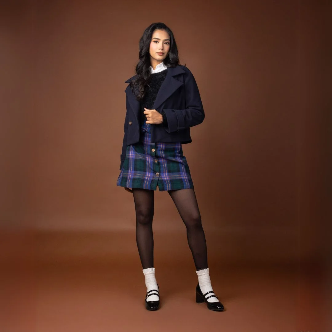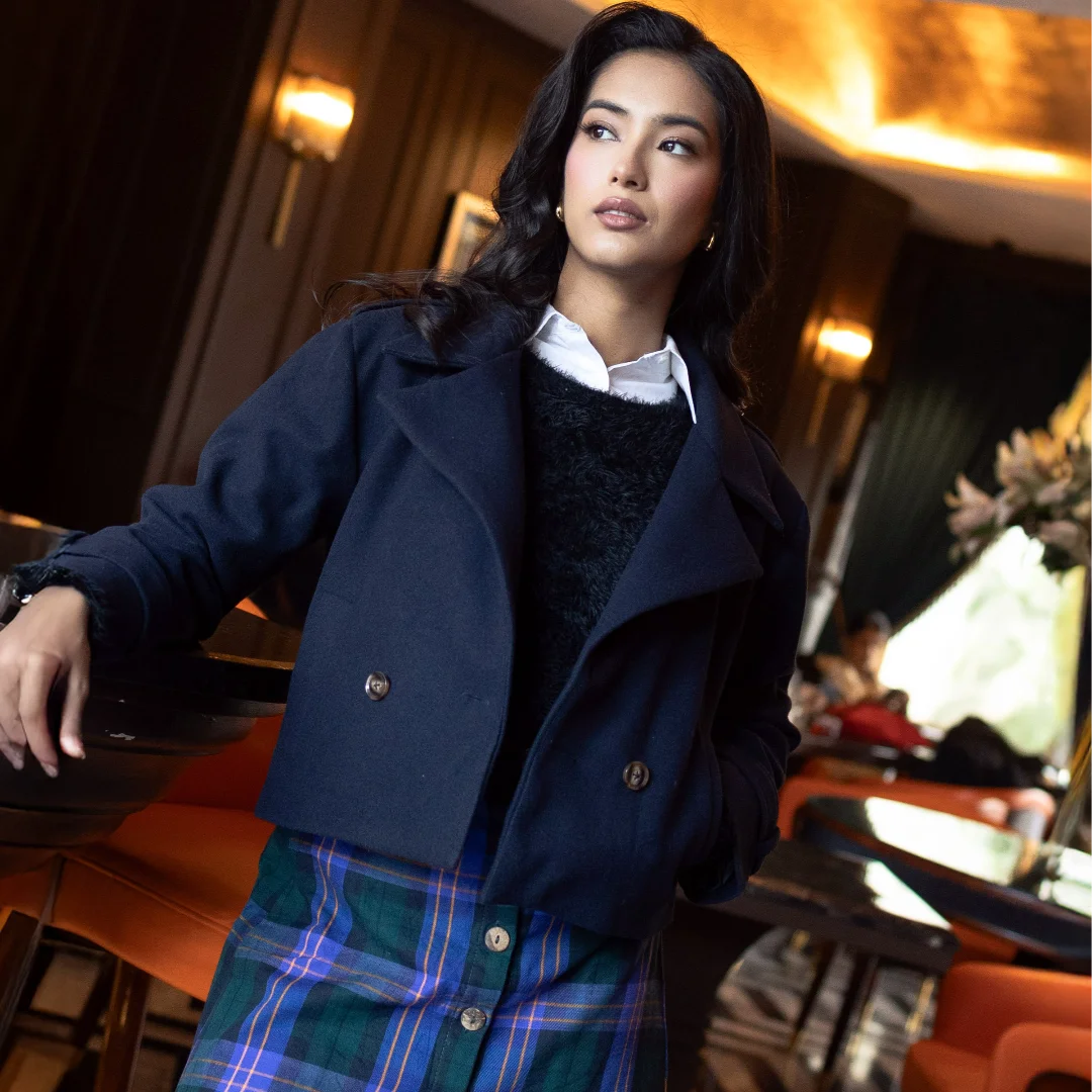 Make a statement this season with our tailored cropped coat. Designed with a sharp silhouette and an oversized lapel collar, this versatile piece is both contemporary and timeless. Crafted from fine acrylic wool and finished with meticulous attention to detail, it offers exceptional quality and durability.