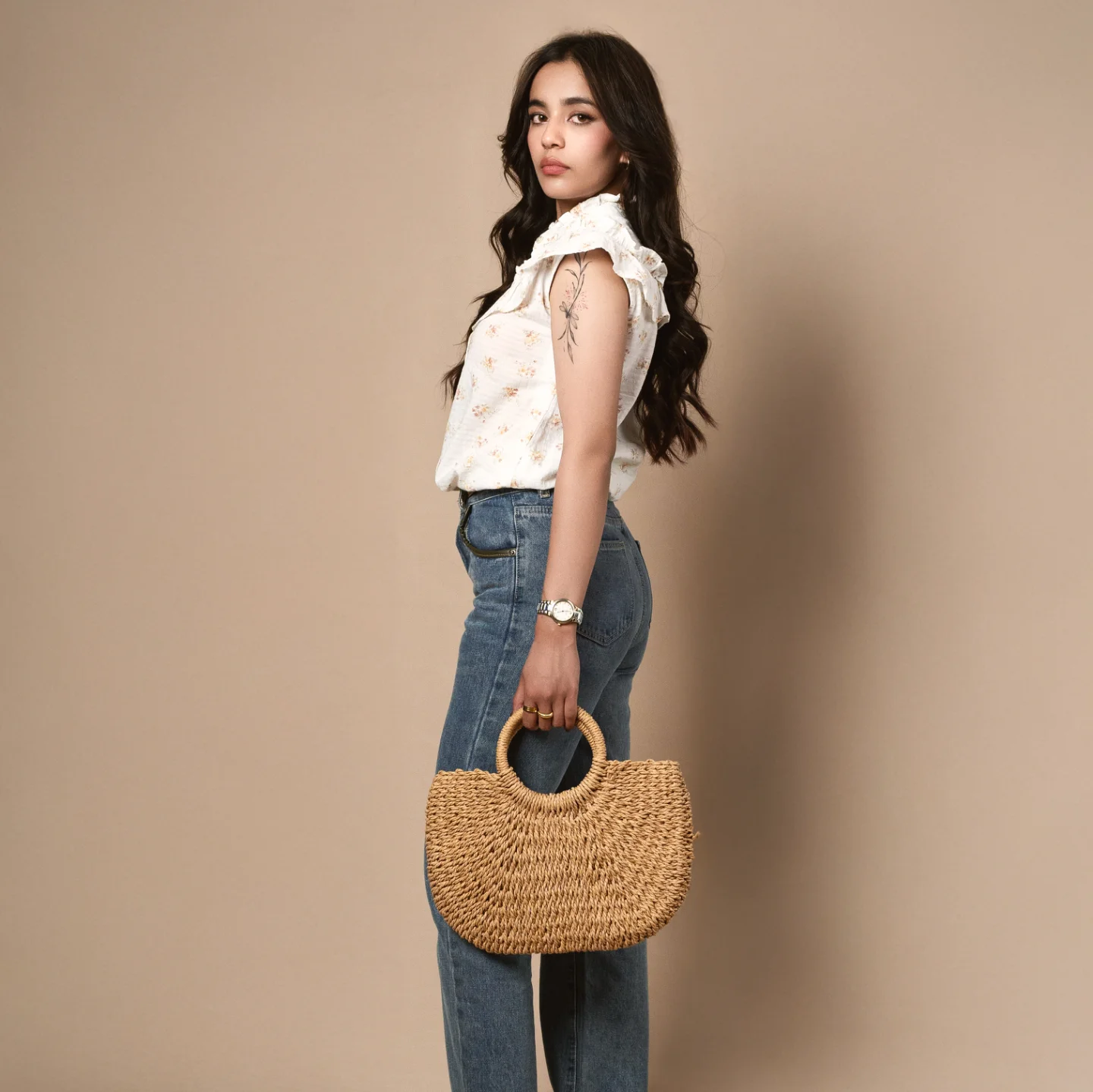 Minimal brown floral print