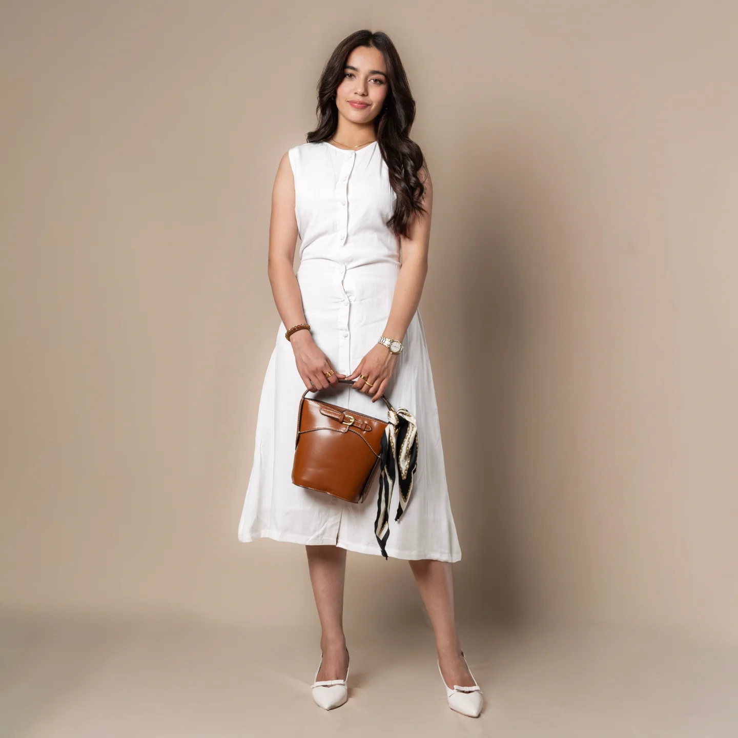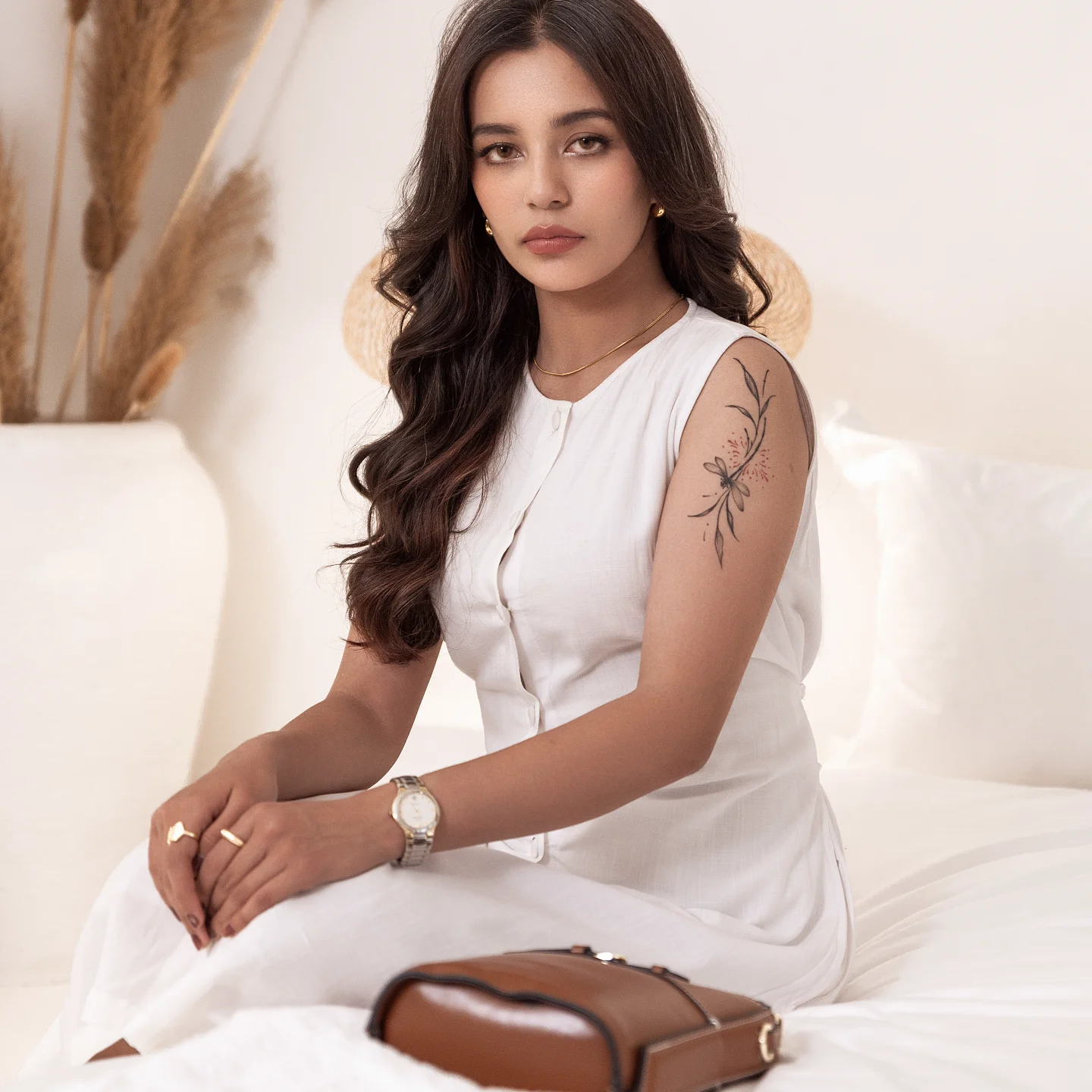 With clean lines, a flattering silhouette, and thoughtful details like an adjustable tie-back and soft button accents, Eva was made for movement, grace, and everyday elegance.