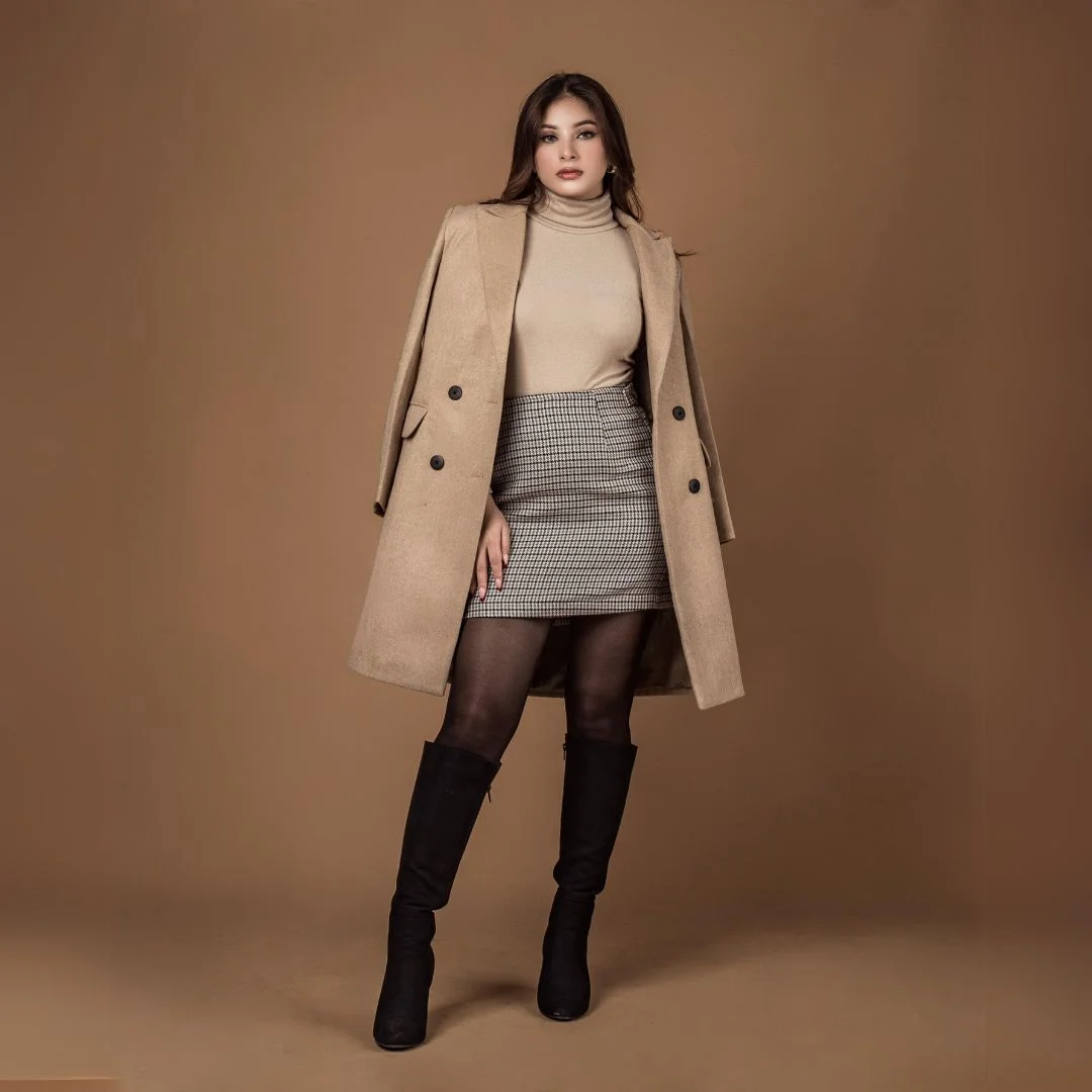 Add a touch of understated elegance to your wardrobe with the Tweed Mini Skirt in Beige. Featuring tailored details such as an elastic waist band and a side button closure.