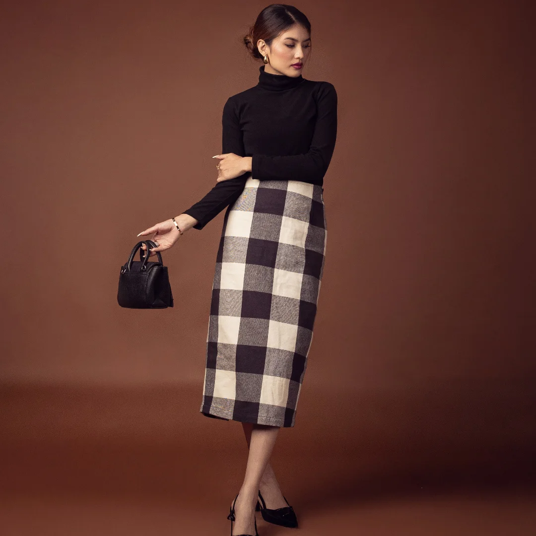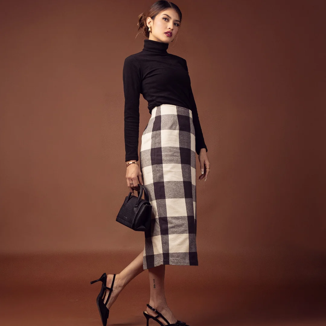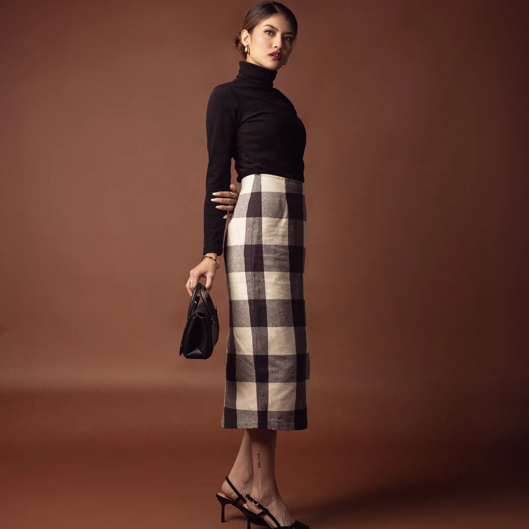 Crafted from a luxe wool blend, the Pencil Midi Skirt is made for style and warmth all season long. Features an elastic back along with a side zipper and button closure for ease of putting on. The slit on the back makes it effortless to walk in.