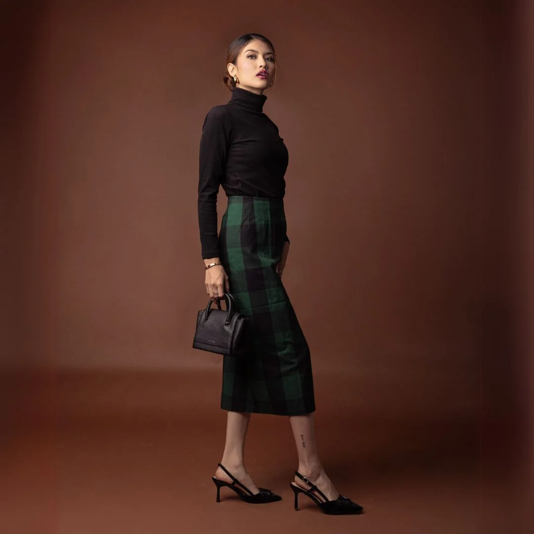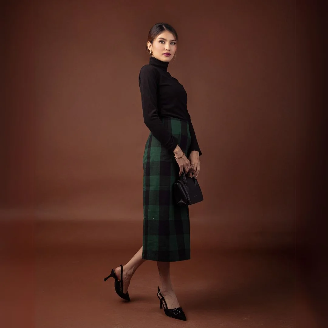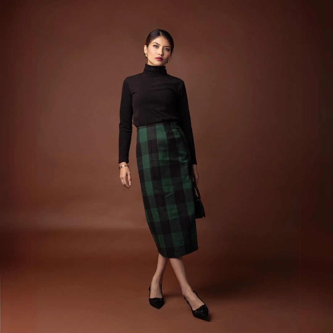 Crafted from a luxe wool blend, the Pencil Midi Skirt is made for style and warmth all season long. Features an elastic back along with a side zipper and button closure for ease of putting on. The slit on the back makes it effortless to walk in.
