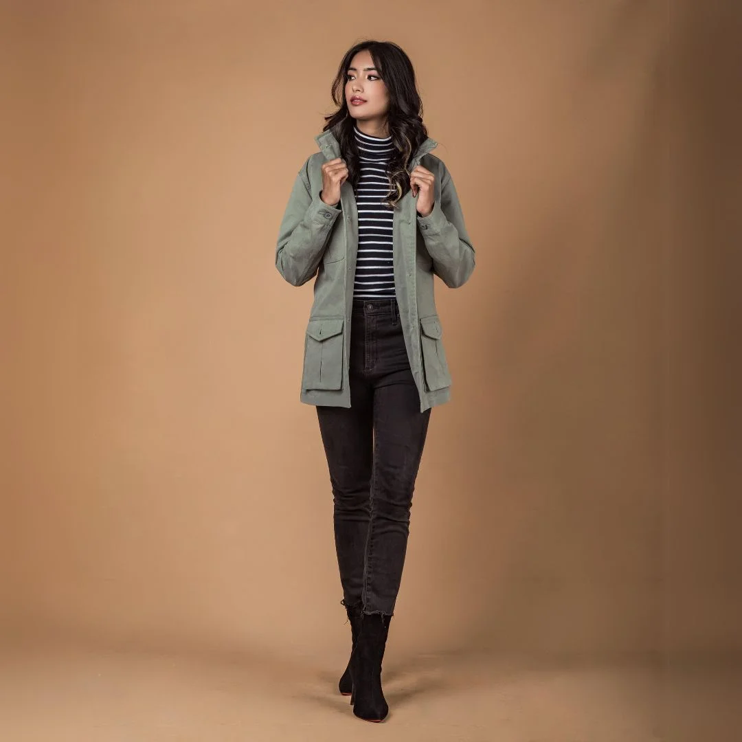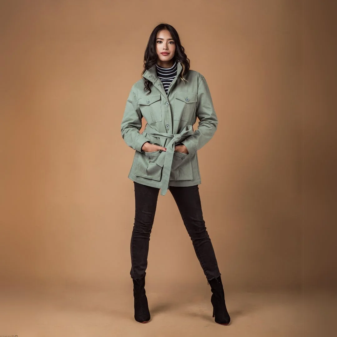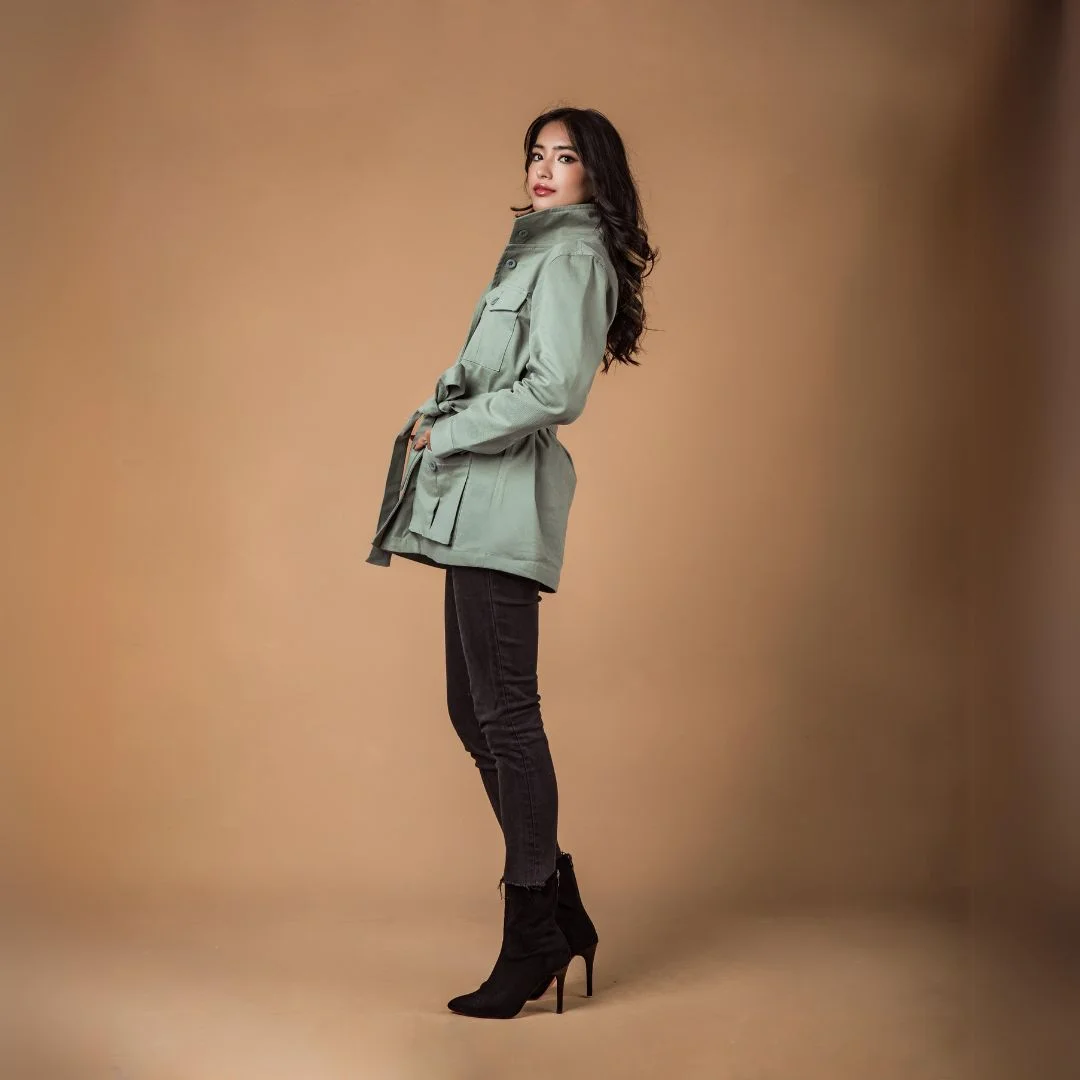 Elegance meets utility with our Twill Safari Jacket. Featuring flap pockets and a waist belt, it is perfect for creating stylish everyday looks.