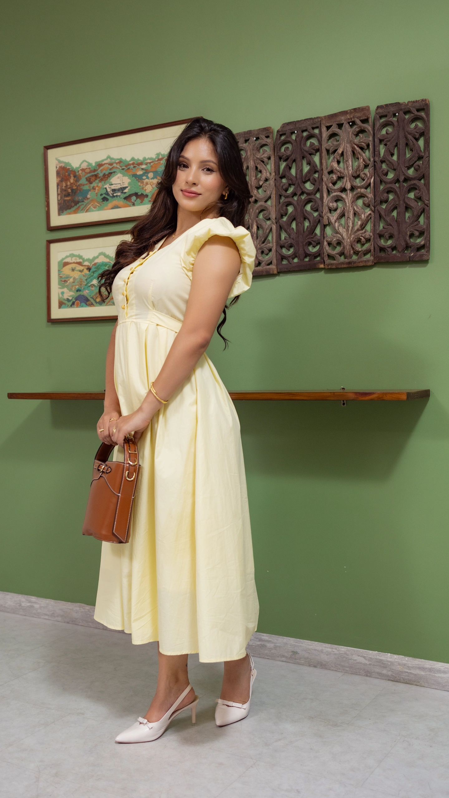Sun-kissed and effortlessly chic — the Thea Maxi in butter yellow adds a soft glow to your summer days, with romantic puff sleeves for that graceful touch.