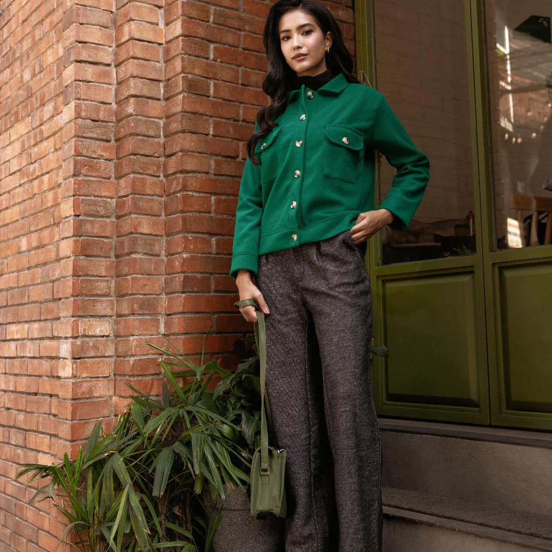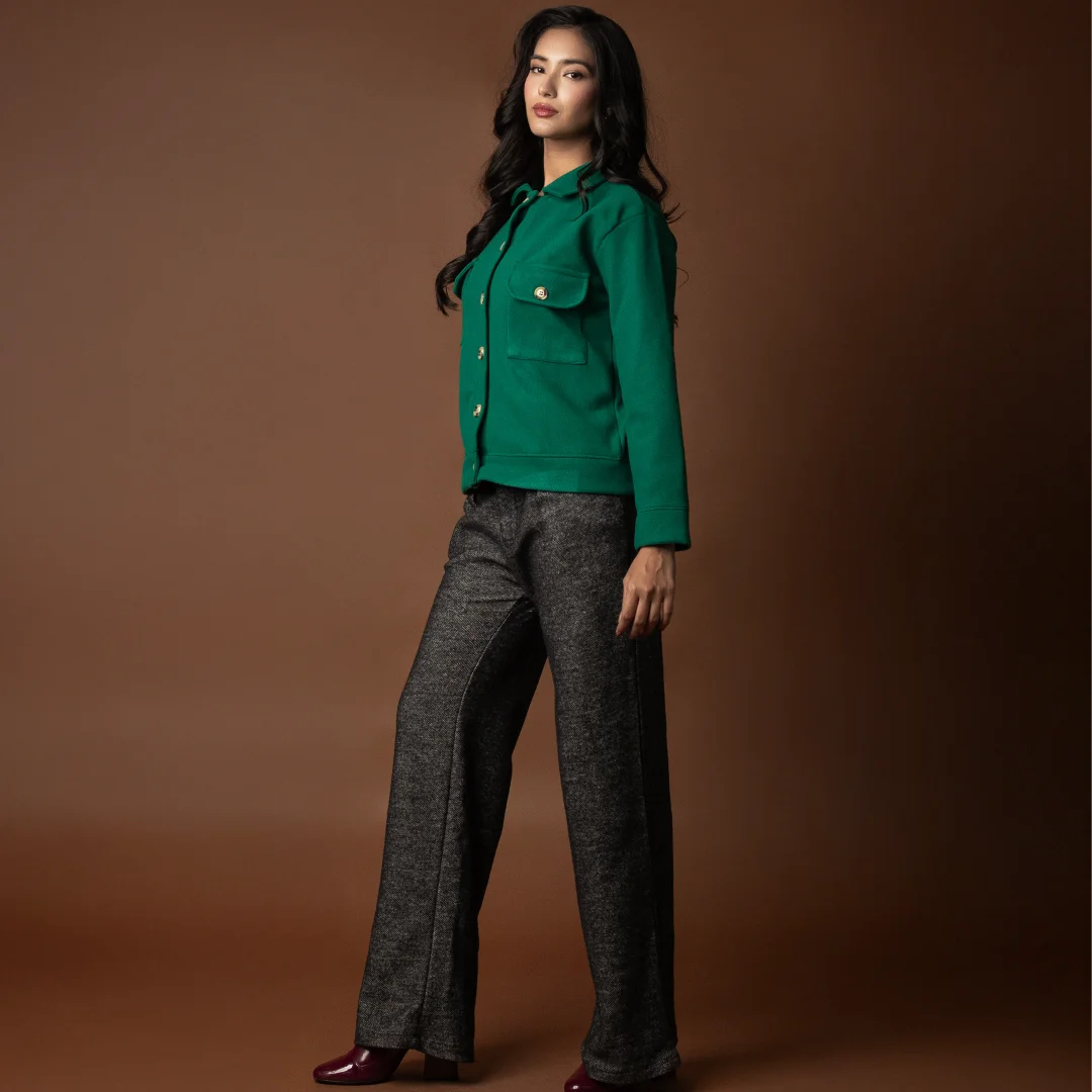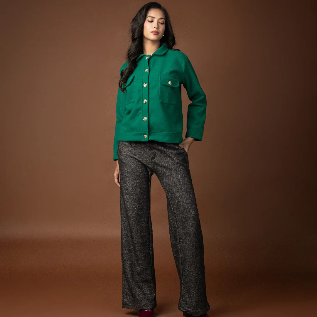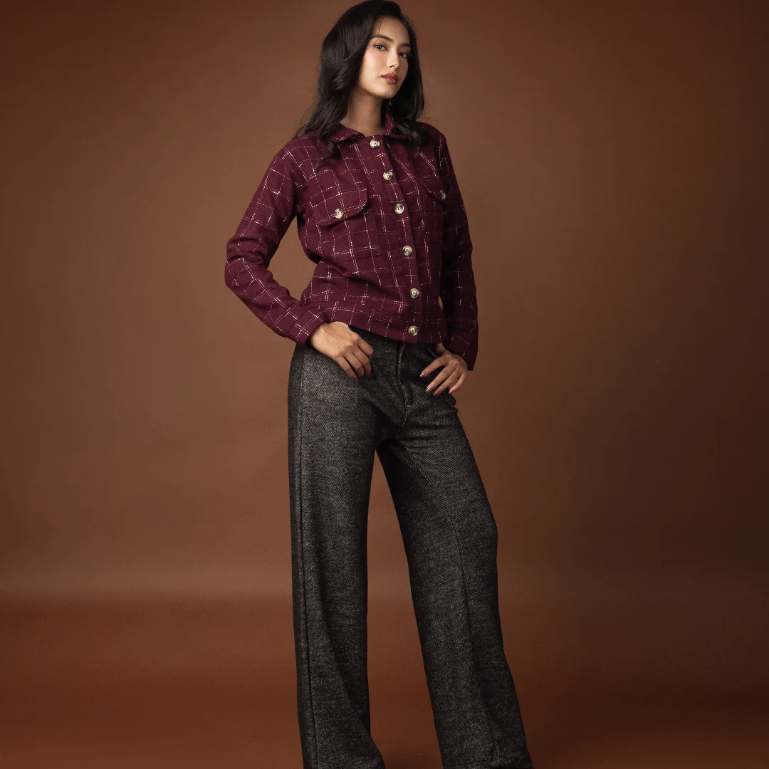 Step into winter in style ❄️ Our wide-leg pants, crafted from a thick, textured fabric, are as cozy as they are chic. Perfect for pairing with chunky knits or tailored coats for that effortless winter elegance.