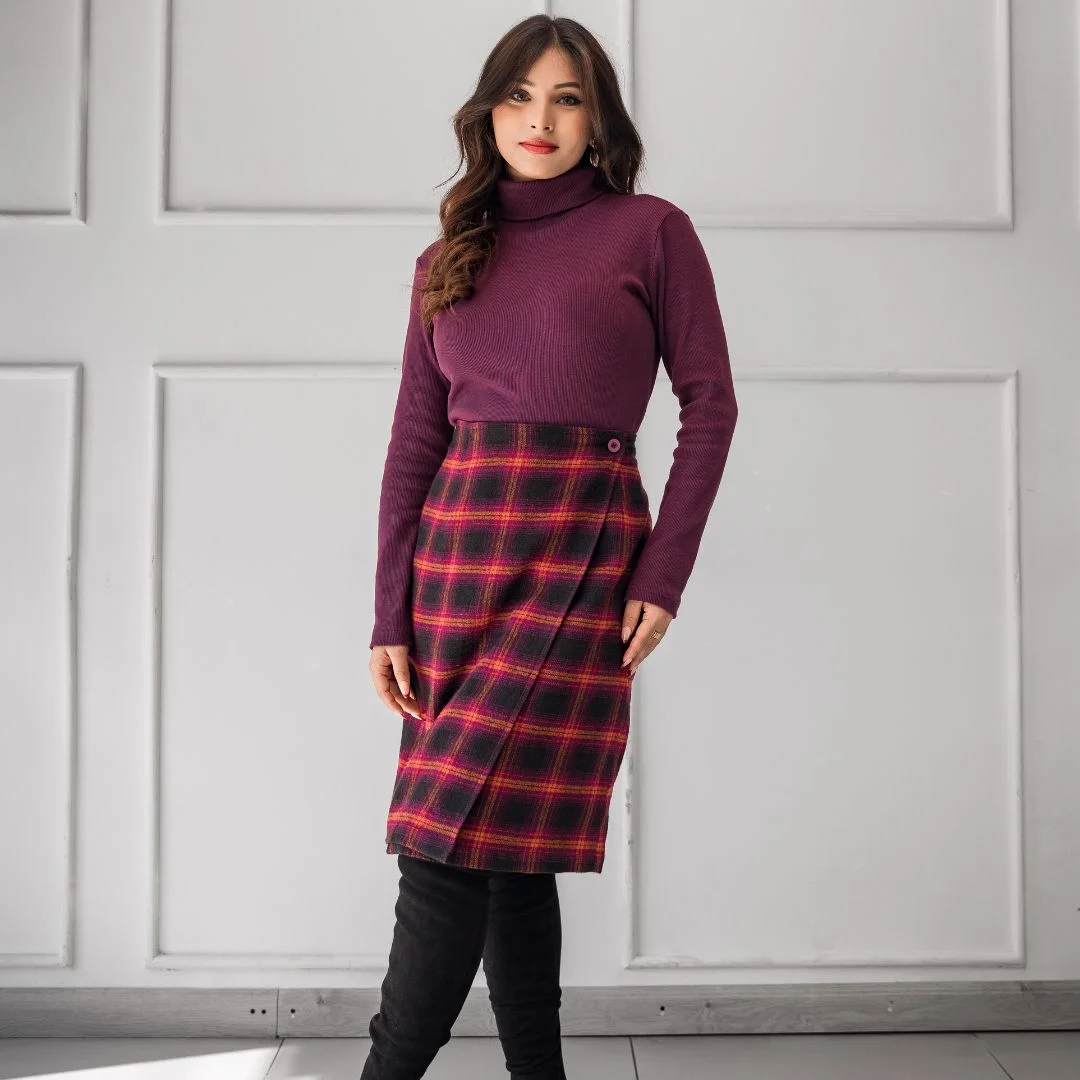 Create your own midi moment with our Wrap Midi Skirt. Made with a wool blend material in warm fall hues, warmth and style unite in perfect harmony.